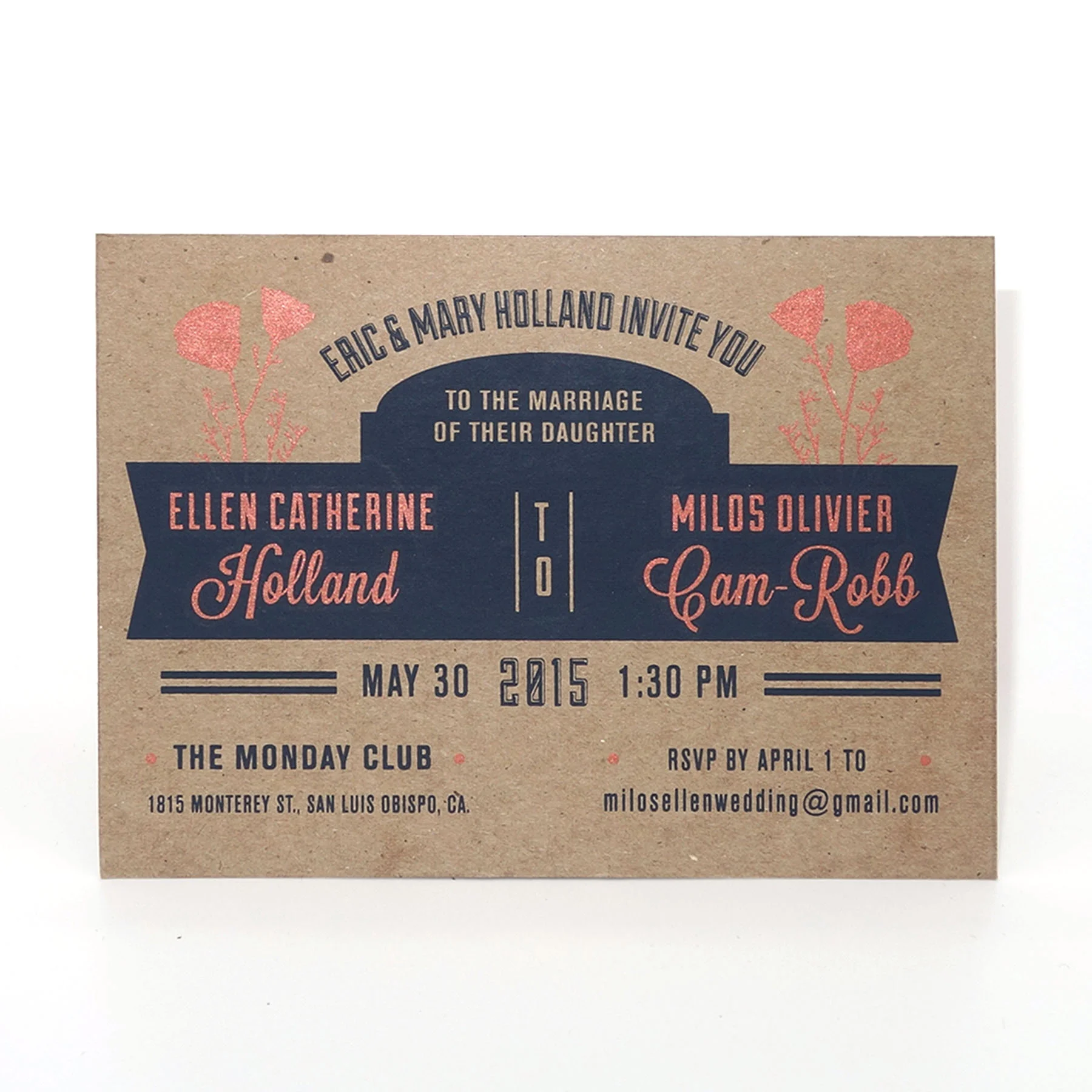 Screen-printed wedding invitations, design by Sarah Hobsetter.