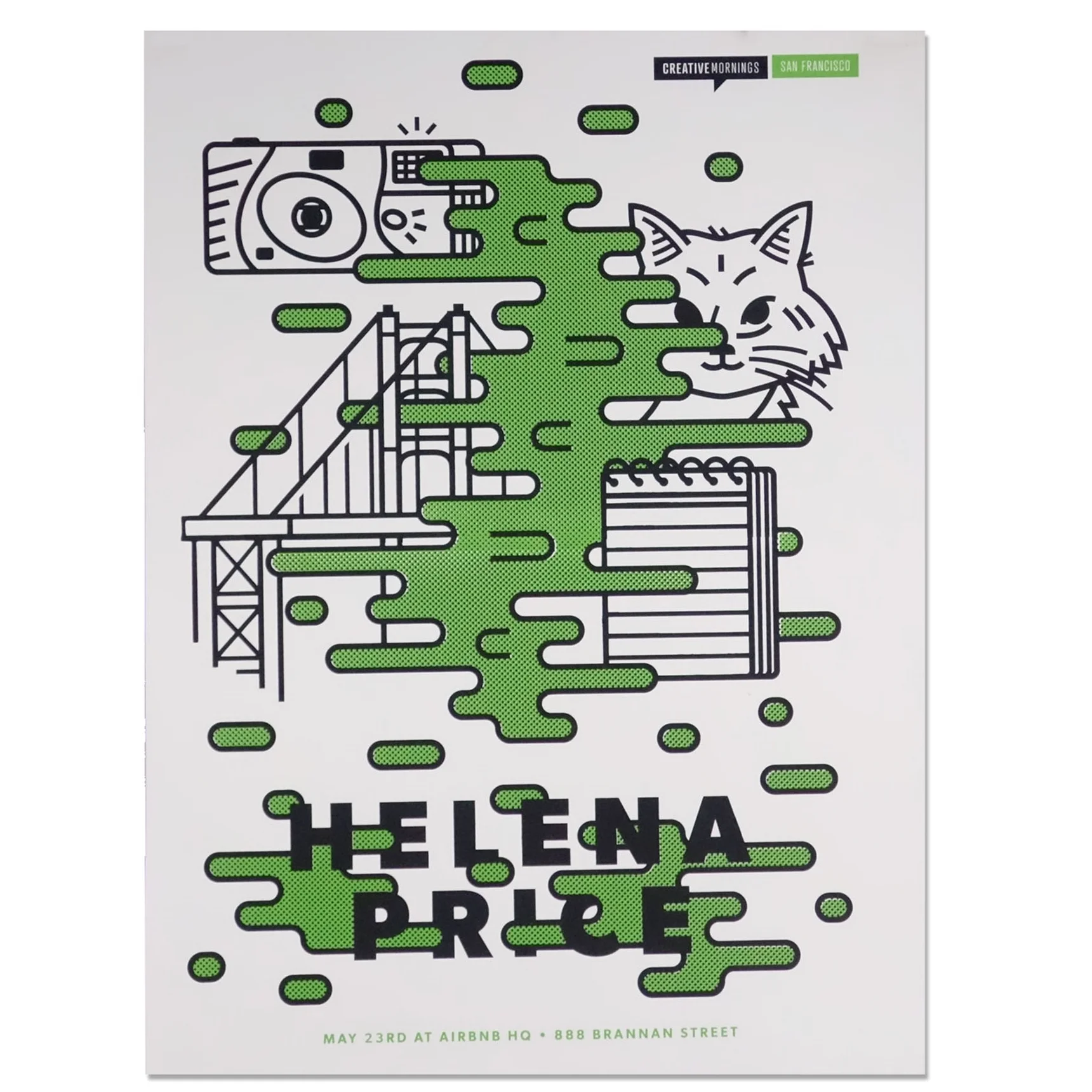100 promotional posters screen-printed for the Helena Price Creative Mornings talk. Design by Justin Pervose. Two color screen-print on card stock.